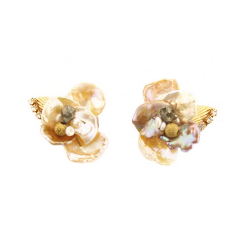 Handcrafted Mother-of-pearl earrings with pyrite and fresh-water-sea pearls