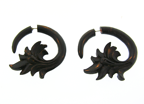Edgy hand carved water buffalo bone earrings. Extremely comfortable ligh-weight faux gauge earrings give the illusion of a stretched (gauged) ear.