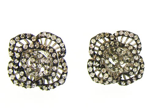 White Topaz encrusted rose earrings.