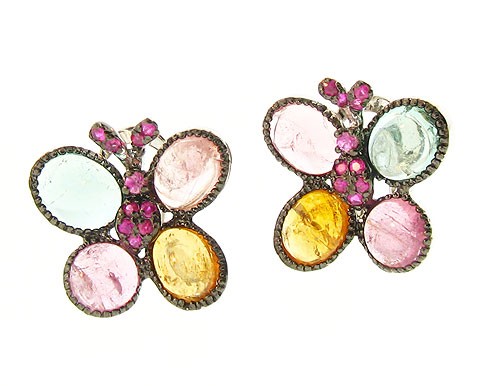 Toumaline encrusted butterfly earrings with rubies.