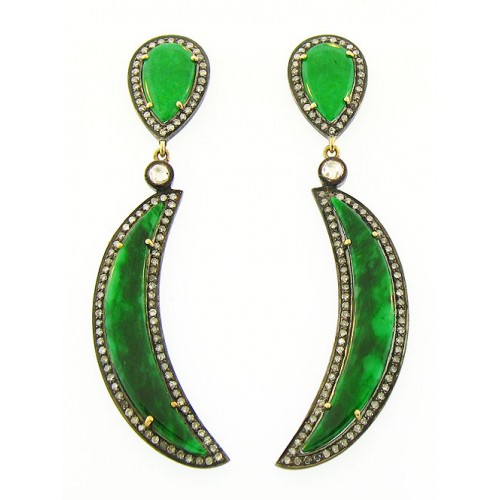 Victorian style Jade crescent -shaped earrings with diamonds.