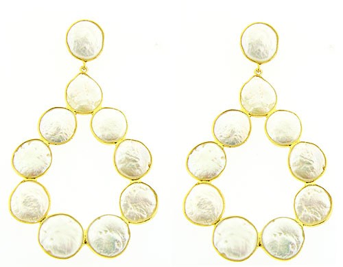 Concentric dangling earrings of Mother-of-pearl.