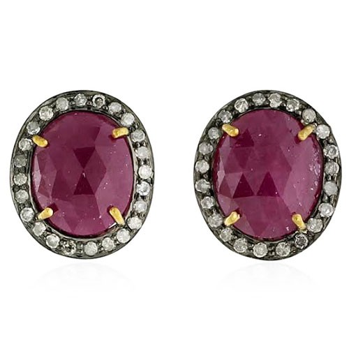Ruby and diamond ear studs.