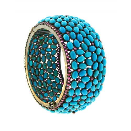 Turquoise and Ruby paved cuff bangle