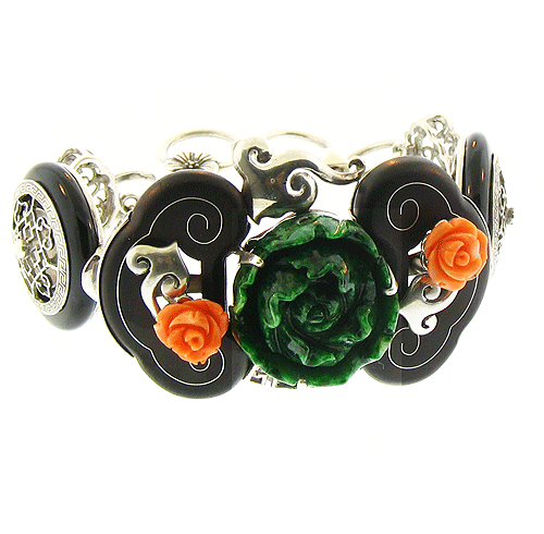 - Grade A Burmese Jade carved peony (Flower-green) variety