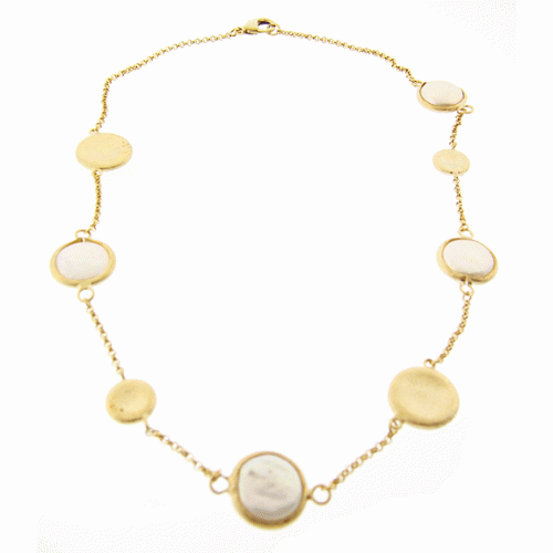 Coin necklace with fresh-water-sea pearls.