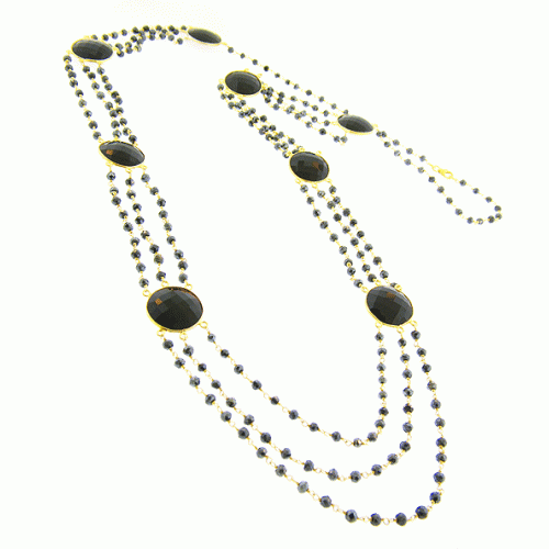 Triple-stranded necklace of hematite and onyx.