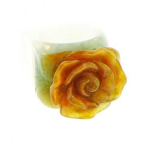 - Grade A Burmese Honey Jade carved rose (Brown and green hues)