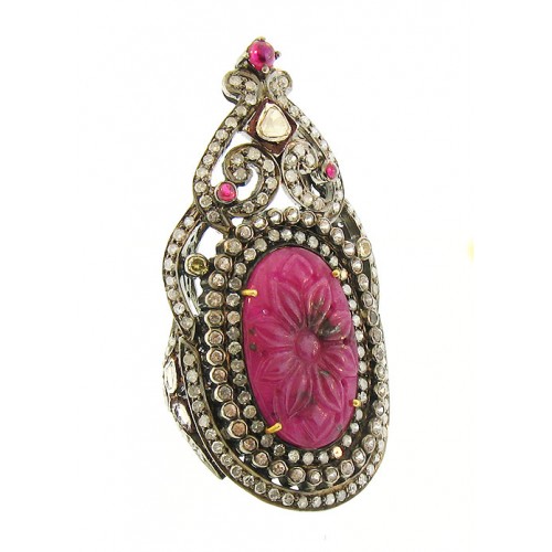 Grand Cocktail ring with Rubies, White topaz and Diamonds.