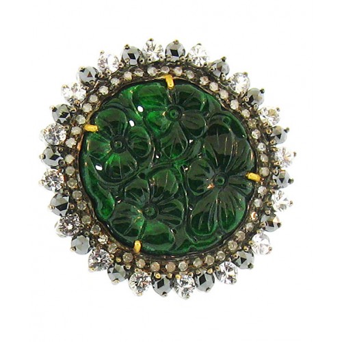 Collectible Jade ring with black spinels, white topaz and diamonds