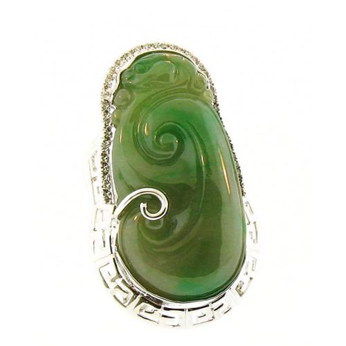 Jade carved silver ring with zirconias.