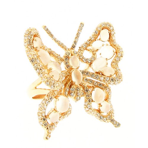 Butterfly moon-stone ring with zirconias.